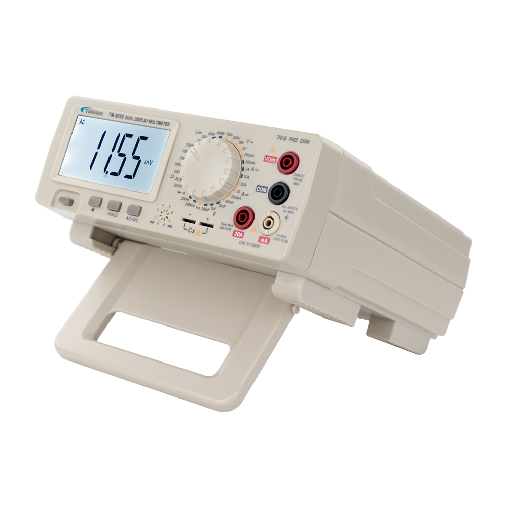 The TM-8055 bench type digital multimeter is a 4 1/2 digital multimeter with large LCD display screen. The bench multimeter digital has the function of measuring DC and AC voltage, DC and AC current, Resistance, Capacitance, Hz, hFE, Diodes and Continuity. For true RMS AC measuring, the digital multimeter has the feature of wide bandwidth measuring and to get accurate rms for AC flow of any waveform or AC+DC.