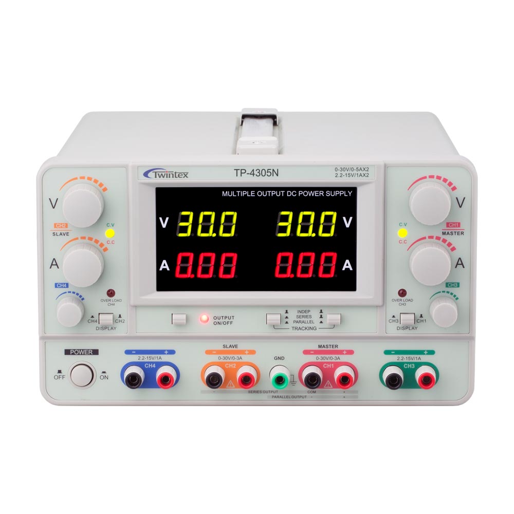 By numbers of outputs, regulated DC power supplies are categorized into single output (1-channel), dual output (2-channel), triple output (3-channel), quad output (4-channel), quint output (5-channel) or even more output types. Those having two or more outputs are collectively referred to as multi (multiple) output DC power supplies. Multi-output DC power supplies are ideal for testing circuits with multiple voltage.